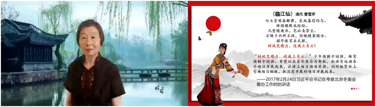在职教师代表,离退休工作处黄弗矜老师分享了自己对“大鹏一日同风起,扶摇直上九万里”诗句的理解,激励同学们将实现中华民族伟大复兴作为自己的鲲鹏之志,厚积薄发、不负韶华。人文与社会科学学院姜楠老师参加本次活动,并就大家分享的诗句做出点评,分享个人独到见解,通过问答方式加深了老师和同学们对诗词的理解。“五老”同志郑秀华老师对活动内容进行点评,她以“求索”为切入点,鼓励同学们要大胆创新、不断探索,砥砺深耕、笃行致远。