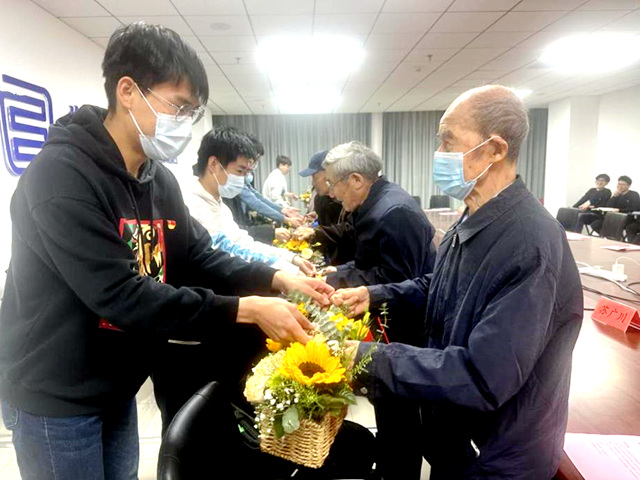 学生党员向老党员们献花,表达青年一代对老党员、老教师们的崇高敬意和接续奋斗的决心。