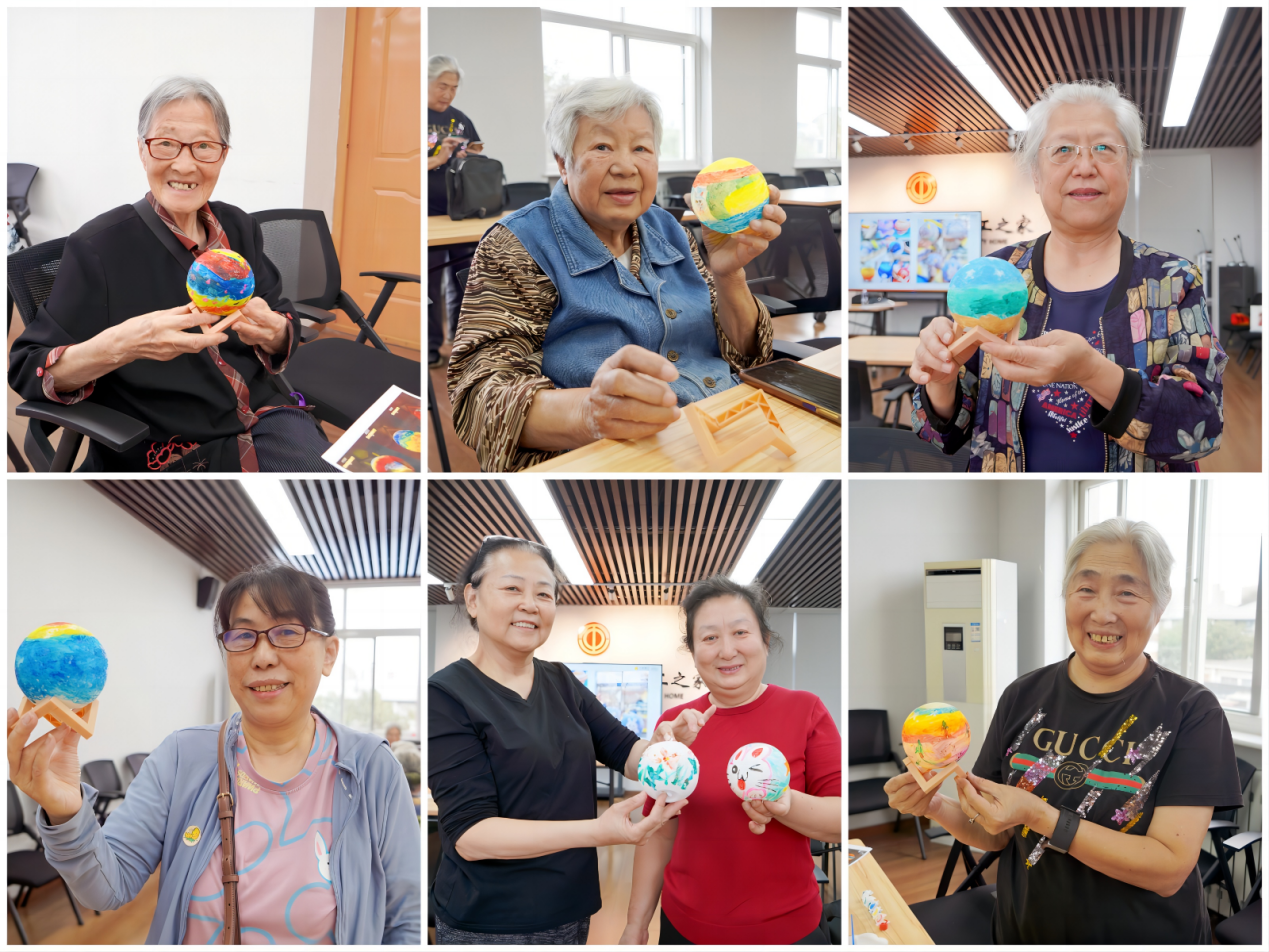 随后,星空灯DIY活动正式开始。在志愿者的引导下,离退休教职工们纷纷动手制作起属于自己的星空灯。他们或低头沉思,精心挑选颜色;或相互讨论,分享绘画心得。经过一番努力,一盏盏色彩斑斓的星空灯逐渐成形。