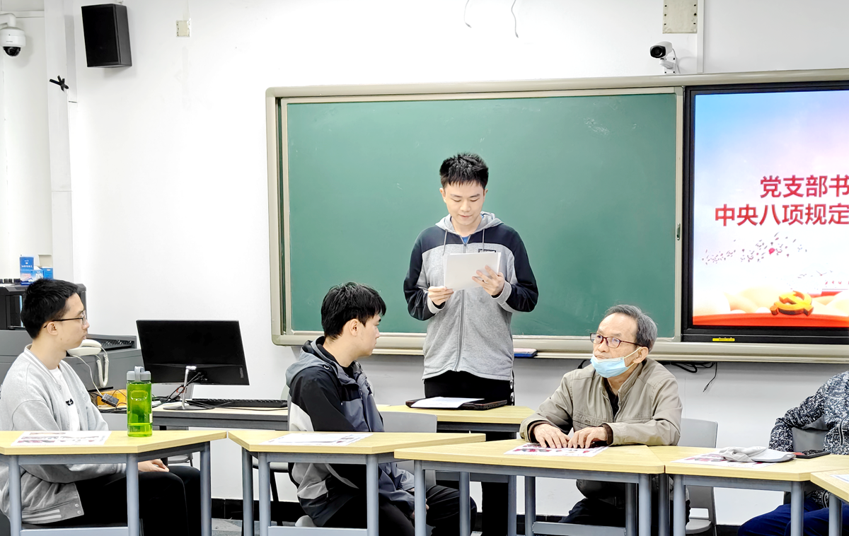 学生党支部书记蒯家诚带领全体党员深入学习中央八项规定精神的核心内容,并结合实际案例,强调作风建设的重要性。通过学习,党员们深刻认识到作风建设永远在路上,必须时刻保持清醒头脑,做到心有所畏、言有所戒、行有所止。师生党员纷纷表示,要以实际行动践行中央八项规定精神,树立党员良好形象,为学校和学院的发展积极发挥先锋模范作用。