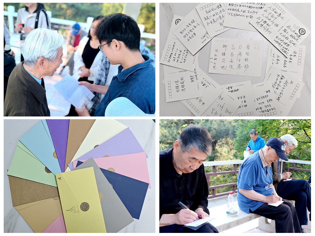 活动尾声,老少师生互赠手写明信片,以笔墨印记传递心灵期许。方嘉洲写下“品德、志向、体魄乃人生基石,望青年学子接续奋斗”;张敬袖勉励同学们“志存高远,脚踏实地”;老党员读书会会长厉凛松则强调“读书,多读书,读好书”;“人生价值在于奉献”,……字字箴言,承载着老一辈对青年一代的殷切嘱托。