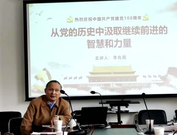 4月21日,校关工委“五老”代表和管理学院体优班研究生党支部党员、积极分子30多人共聚一堂,共同学习百年党史。第一场由李兆民担任主讲。李老师在讲座中强调,要深入学习贯彻习近平总书记重要讲话精神,以高度政治自觉学习党史,以史鉴今,切实做到学史明理、学史增信、学史崇德、学史力行。他寄语同学们:处在“两个一百年”奋斗目标的历史交汇点,生逢伟大的时代,一定要筑牢“四个意识”,坚定“四个自信”,做到“两个维护”,继承和发扬党的光荣传统和优良作风,汇聚迈进新征程、奋进新时代的强大力量,以青春之名续写时代华章。